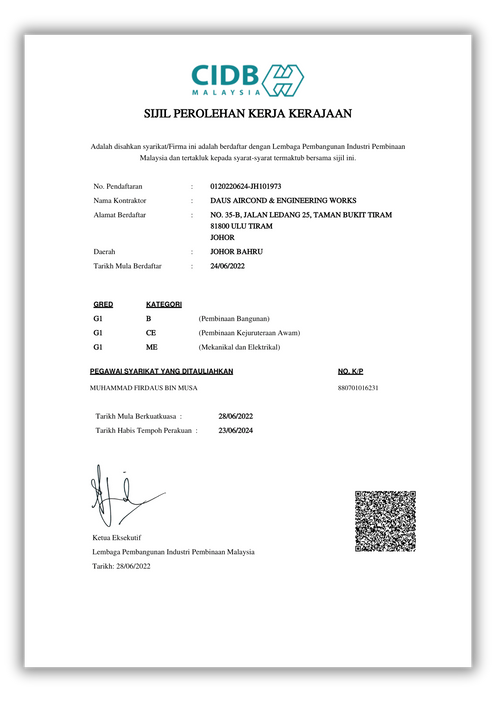 Servis dan nilai yang Daus Aircond tawarkan adalah telus tanpa caj-caj tersembunyi yang membebankan pelanggan.